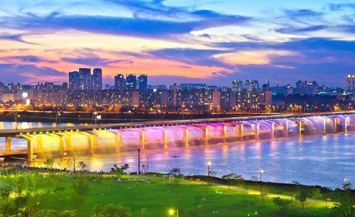 한강의 여러가지 공원 중에서도 반포 한강공원은 밤마다 화려한 무지개 분수쇼가 열려 야경을 찾는 방문객들이 많은 곳입니다. 또한 주변에 밤도깨비 야시장이 열려 다양한 간식을 즐기기에도 좋은데요. 한강의 야경을 배경으로 맛있는 간식과 맥주 한잔을 하기에 좋은 곳입니다.