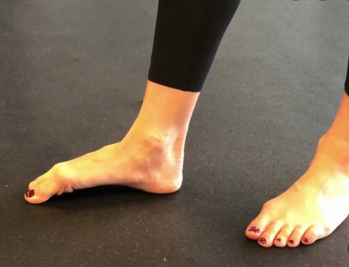 발목 안쪽을 기울여 체중을 실어줍니다.